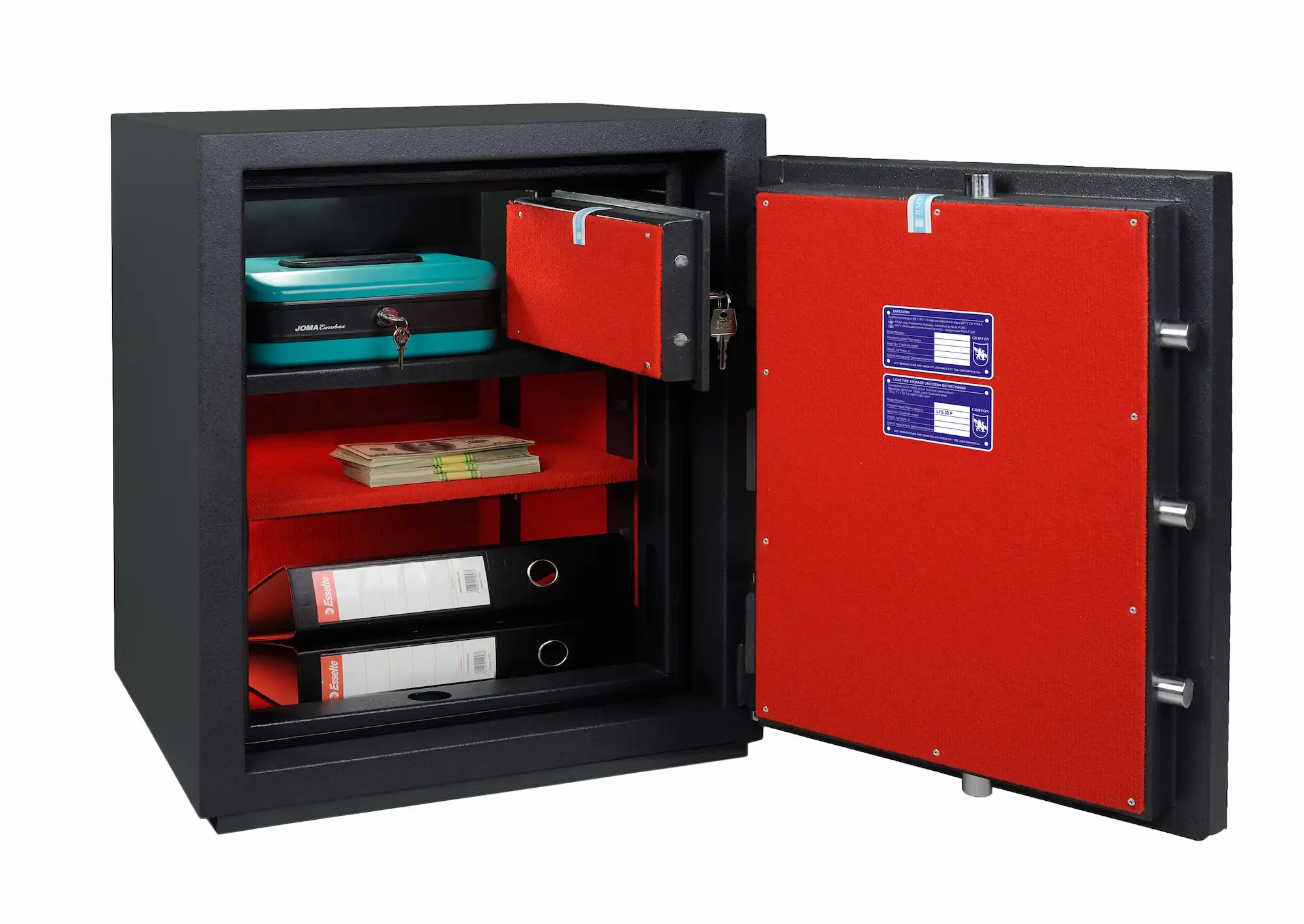 Una solución para la protección de valores y documentación que combina seguridad y protección contra el fuego. Esta caja fuerte de sobreponer Griffon CL (Grado II) está diseñada para ofrecer una custodia completa, con características de resistencia al robo y propiedades ignífugas.